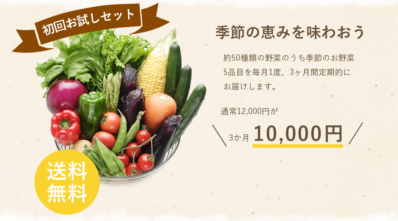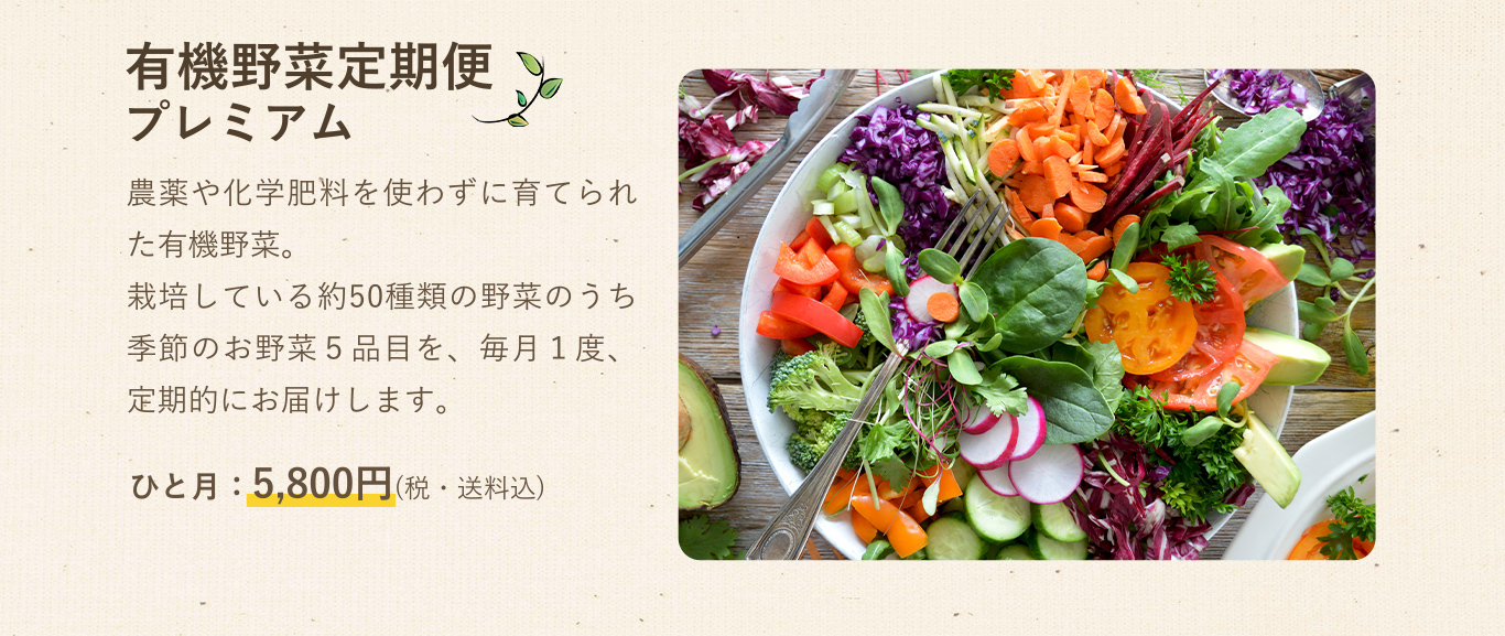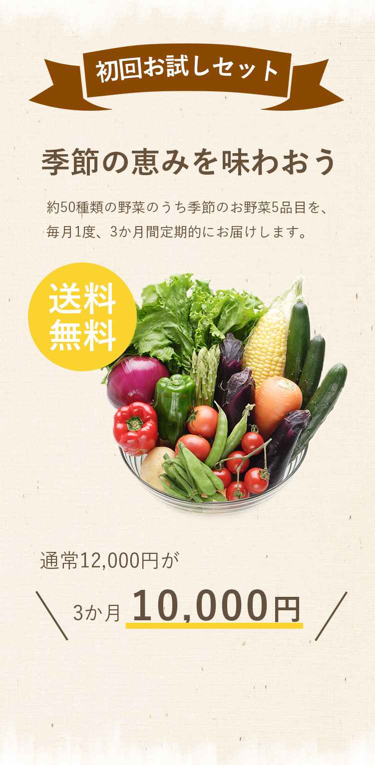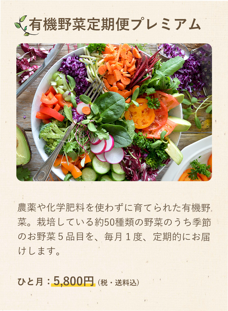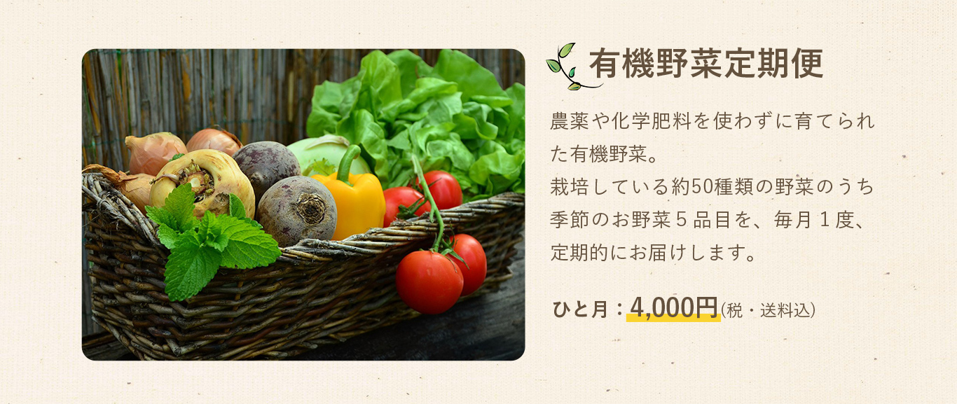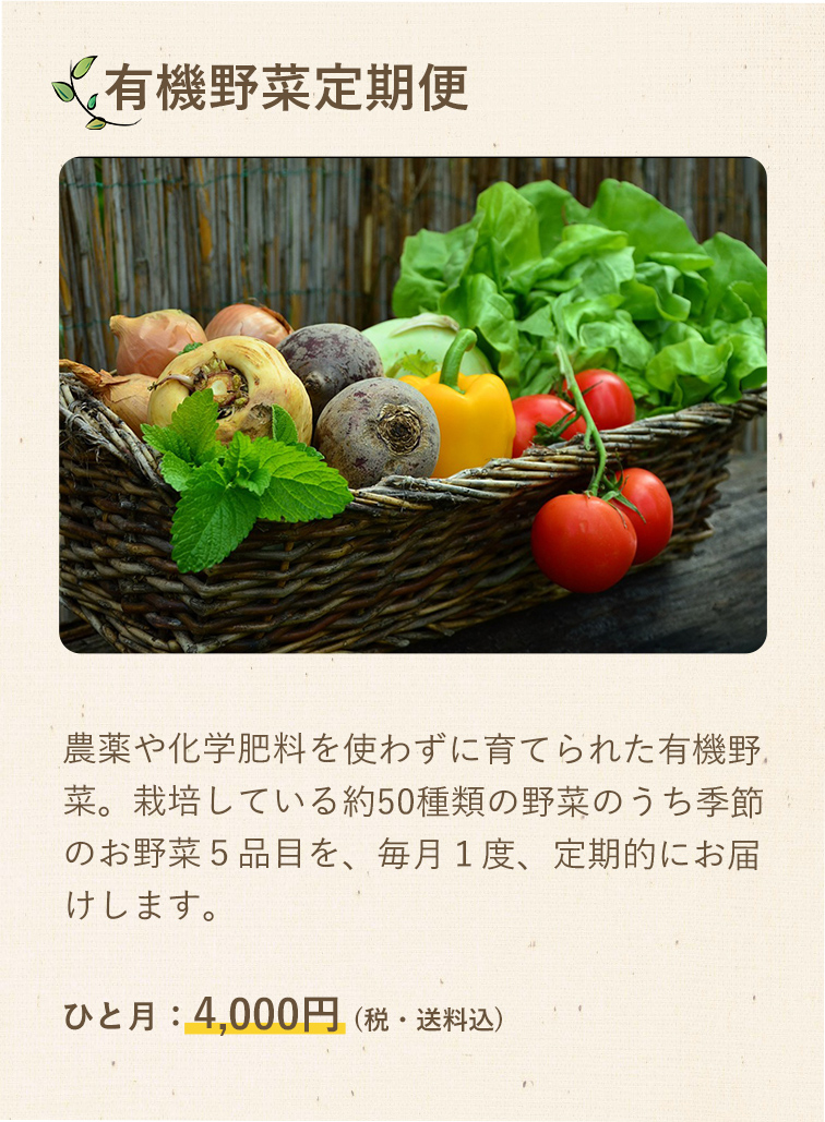 自然の恵みといっぱいの旬の野菜を毎月お届けします。